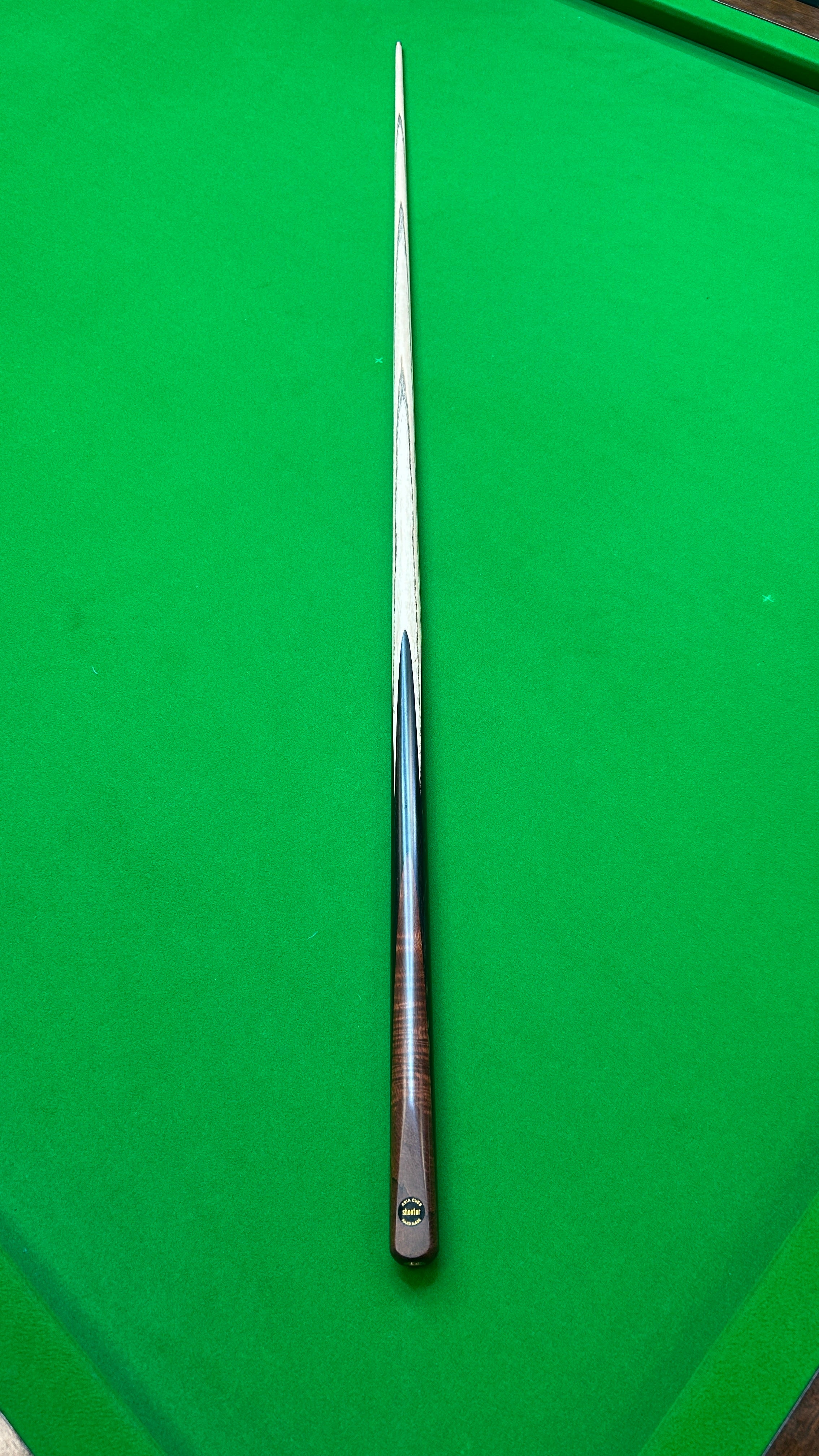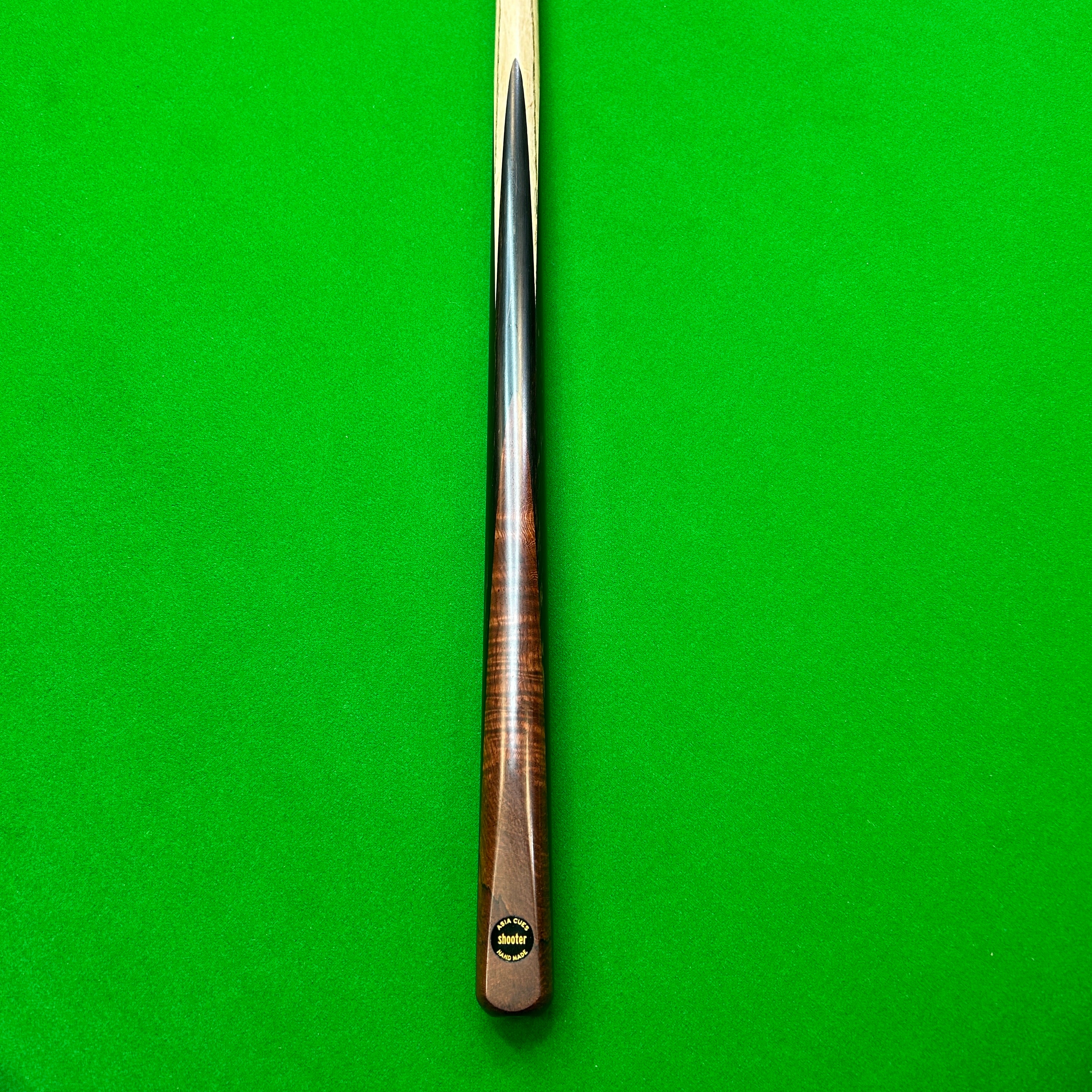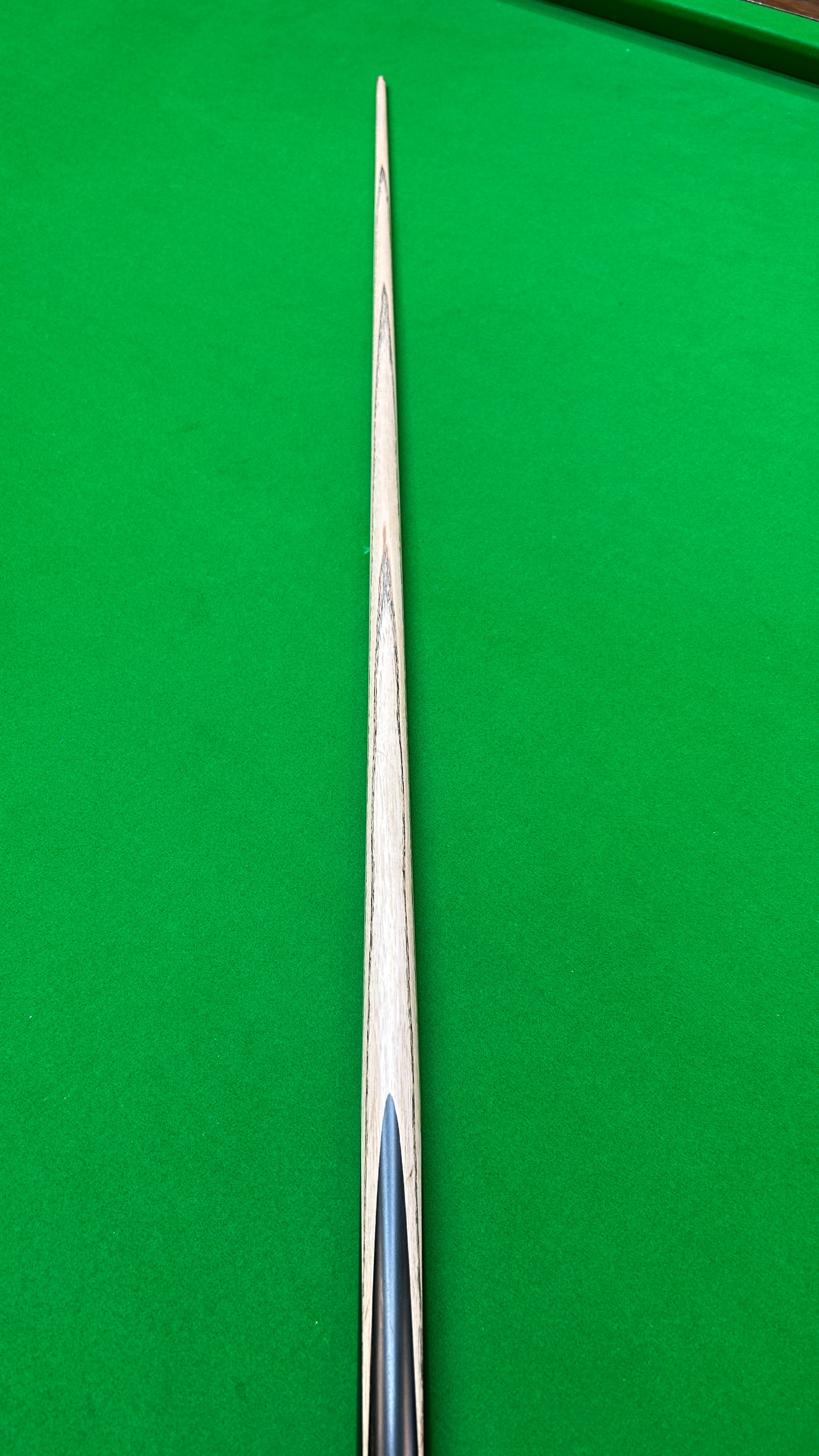 Single Front Splice Cue Containing Brown Curly Paduk Front Splice, and Ebony